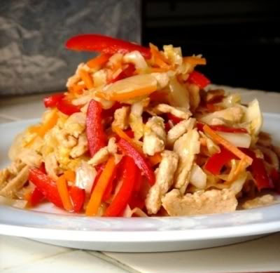 3. Đổ hỗn hợp bắp cải và gà vào xào qua với nhau.