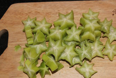 1. Khế rửa sạch, gọt đi viền các múi khế rồi thái thành các lát dày.