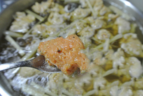 3. Để tạo màu sắc hấp dẫn và tăng hương vị cho món lẩu, các bạn cho thêm từ 1-2 thìa cà phê sa tế (tùy vào khả năng ăn cay nhé).