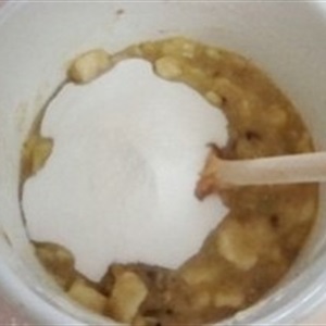Bước 2:Sau đó cho đường trắng vào trộn đều để đường tan hết.