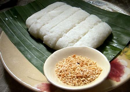 Muối tinh cũng rang lên cho khô. Trộn với lạc vừng đã giã vỡ.