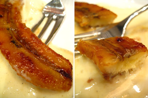 Đun chảy bơ trong chảo không dính, lửa vừa - to. Thêm đường đỏ và chuối, mặt cắt lên trên. Nấu trong khoảng nửa phút rồi thêm rượu rum hoặc nước cam và bột quế đun thêm nửa phút nữa thì lật mặt chuối đun khoảng 1 phút nữa là xong. Cho chuối và nước sốt ra làm hai đĩa, ăn kèm kem vani, kem tươi hoặc sữa chua.