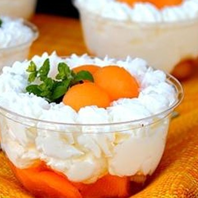 Trong lúc đó chuẩn bị các ly thủy tinh hoặc cốc nhựa. Sắp mỗi ly 1 chiếc bánh quy giòn.