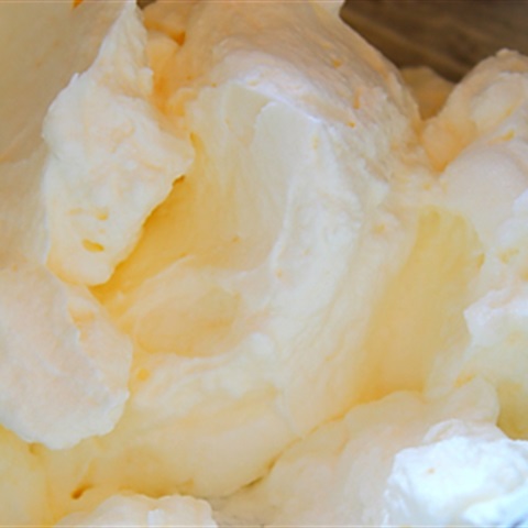 Cho kem tươi vào tủ lạnh khoảng 10 phút. Lấy ra, đánh kem tươi với đường cho nổi đặc lên. Rồi thêm sữa chua trộn đều. Cất lại kem tươi vào tủ lạnh.