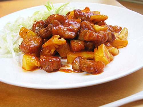 Hương thơm của dứa rất cuốn hút và vị xốt cà chua ngấm trong từng miếng thịt khiến bạn không thể không nếm thử